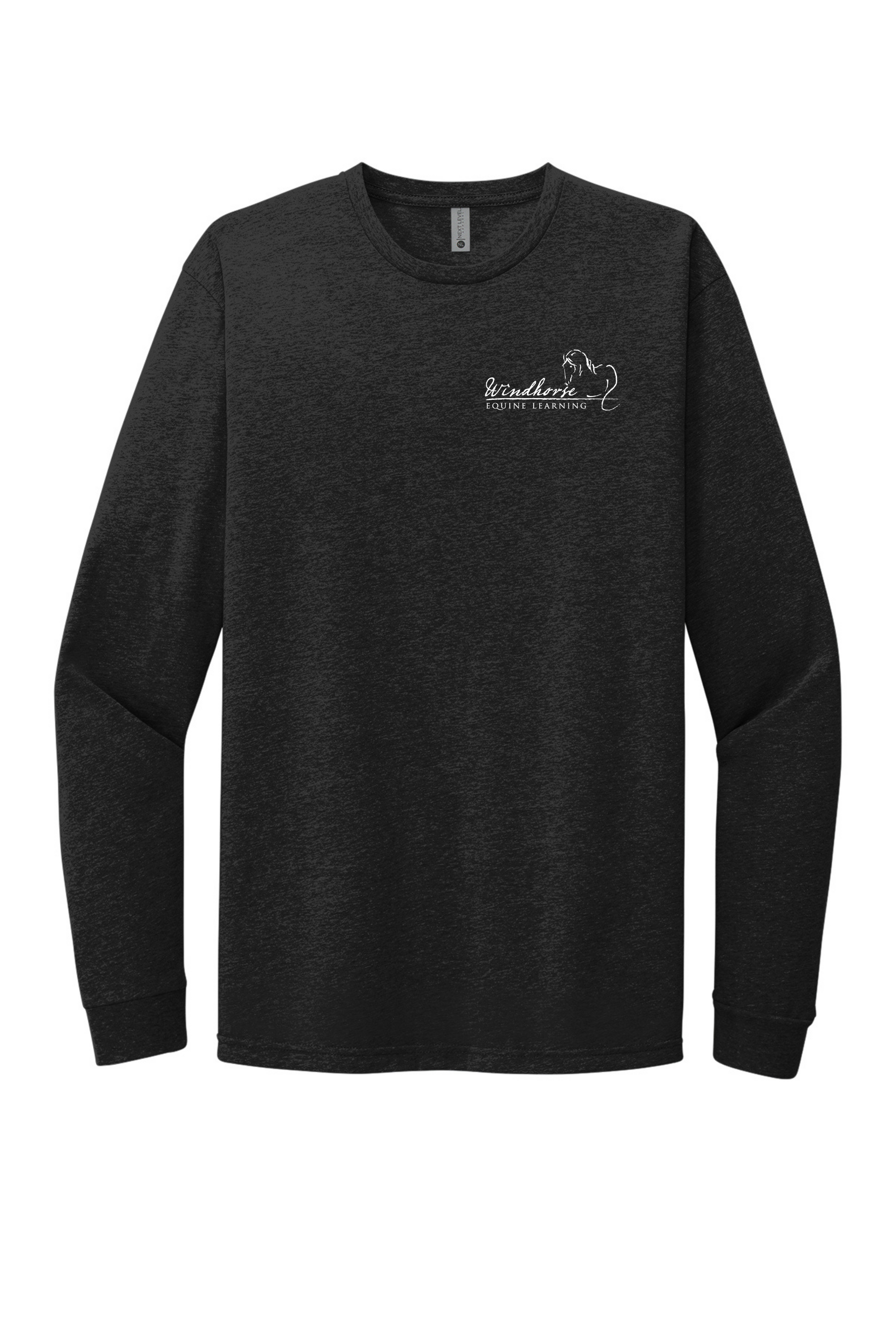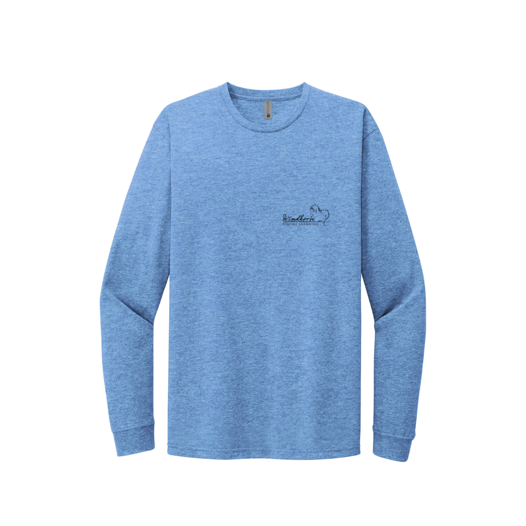 Unisex Long Sleeve T-Shirt with Windhorse Logo Embroidered on left chest. Cotton and Polyester blend with tear-away label. Adult sizes XS-3XL.