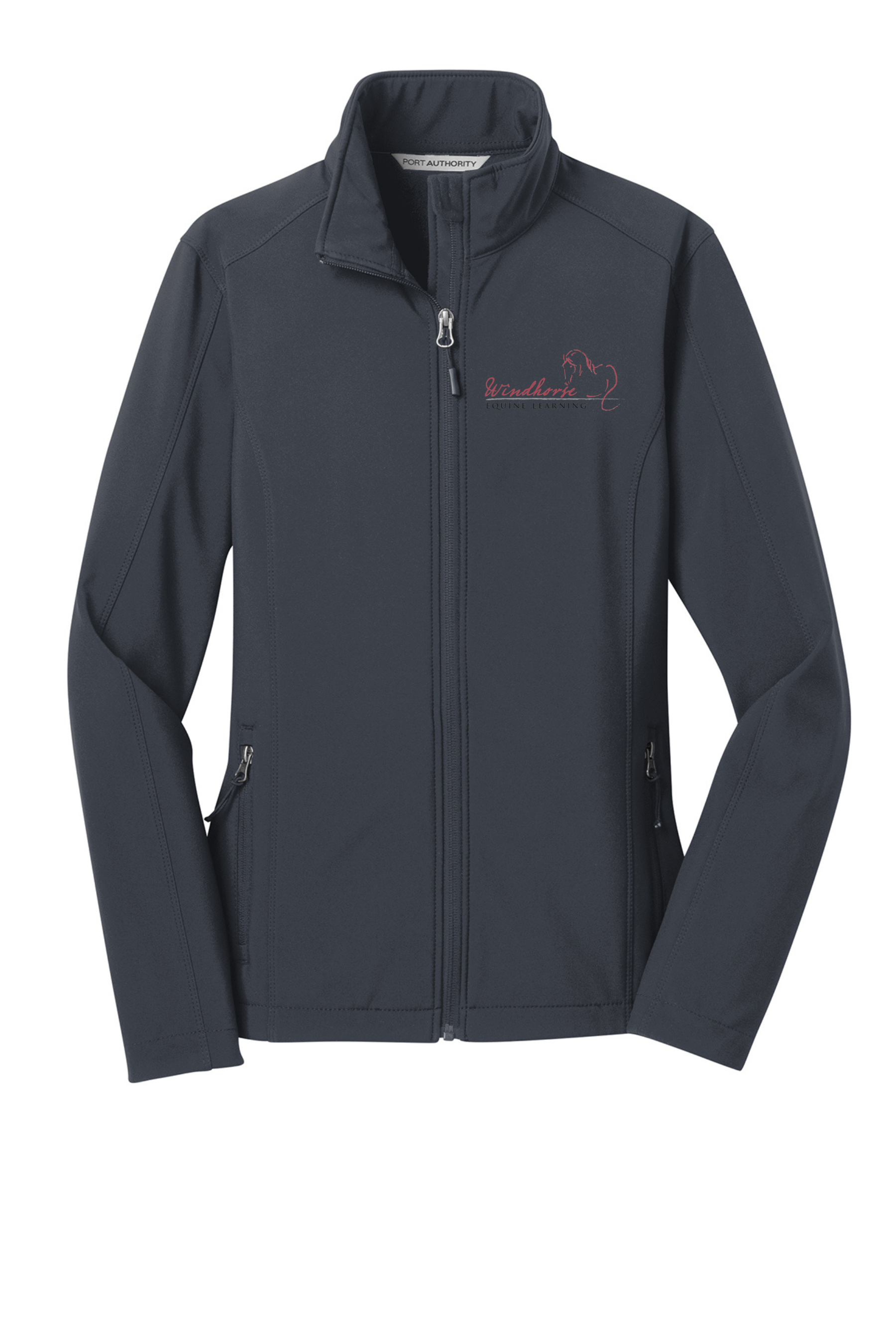 Women's soft-shell jacket perfect for bundling up in colder weather. Wind-resistant, water-repellent, with front zippered pockets and a microfleece lining. Embroidered with the Windhorse logo on the front left chest. Women's sizes XS - 3XL.